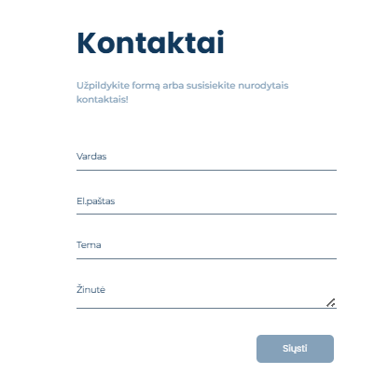 Atlikti darbai: šablono pritaikymas, UX/UI sprendimai.